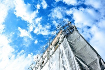 工事完了前、足場のかかった状態で竣工検査を行います。